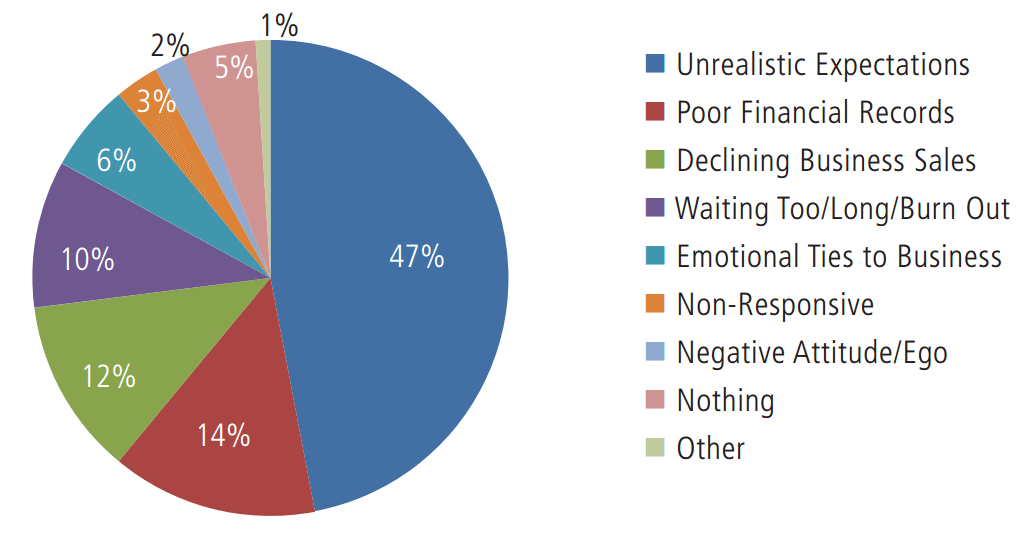 A similar question asked advisors to rank the biggest mistakes seller’s make when selling their business. Results are relatively consistent with the reasons for deal termination.