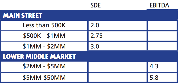 SDE = Seller’s Discretionary Earnings EBITDA = Earnings Before Interest, Taxes, Depreciation And Amortization