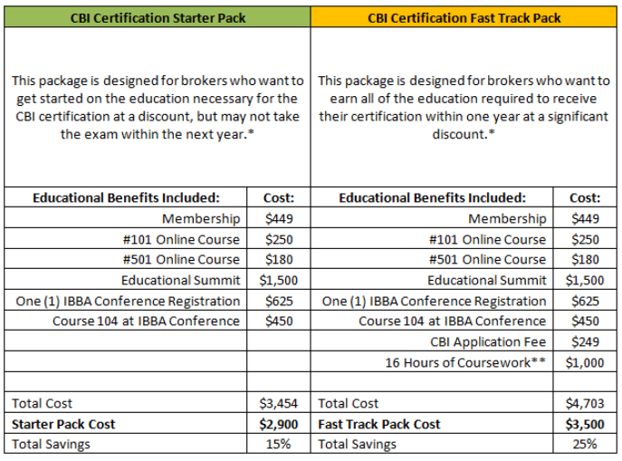 On a related note, the IBBA added two new CBI Certification Packages this month, which are membership packages available to anyone who is considering becoming a CBI. The purpose of these bundled memberships is to provide brokers with an opportunity to meet all of the requirements of the CBI certification at a discount within a compressed period of time. The Starter and Fast Track Packages are outlined below. If you are interested in signing up, please contact IBBA Headquarters at [email protected] or 888.686.IBBA (4222). If you would like more information about the benefits of obtaining your CBI, please visit the IBBA website.