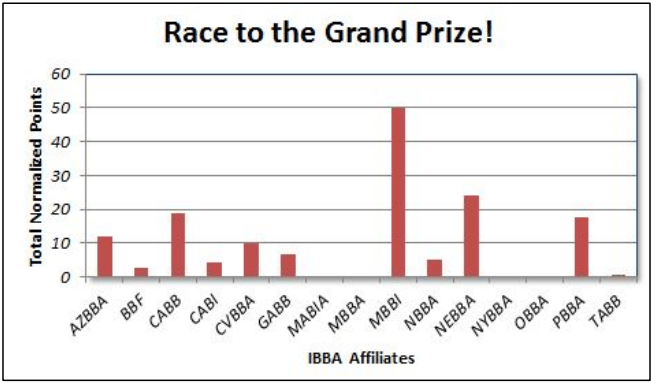 Remember that you can earn a significant number of points for every Affiliate member who joins the IBBA in 2013, right through the end of the year. That can certainly be a game changer. So, help your Affiliate and create more of a chance for you to be the Grand Prize Winner by urging your fellow Affiliate members to join the IBBA and participate.