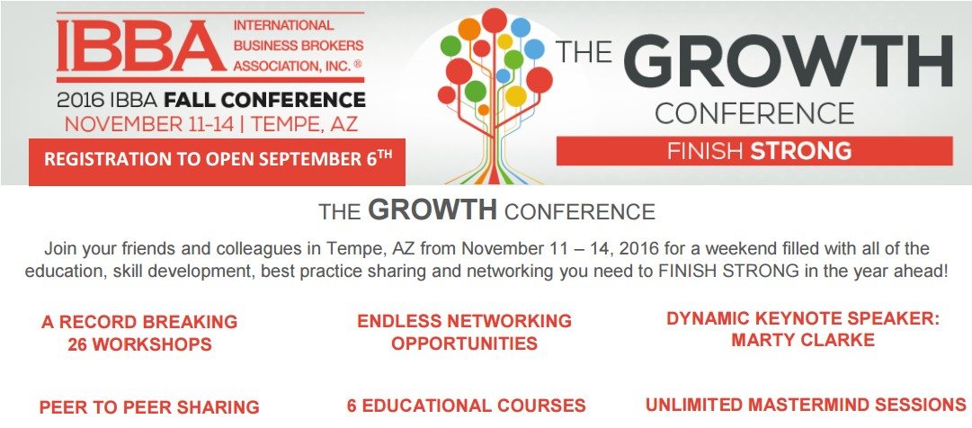I look forward to seeing you all in Tempe, Arizona for the IBBA 2016 Fall Conference in November. Remember, IBBA Conference are an investment in yourself and your company that you don’t want to miss!
