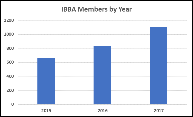 The number one driver of this success is our increase in membership – we officially passed the 1,000 member mark this August! From 2015 to 2016, the IBBA increased membership by more than 25%. From 2016 to 2017, our membership has increased another 32%, and we still have 4 months left in the year.