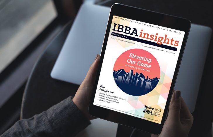 IN THIS ISSUE: “Elevating Our Game”, Letter from the 2022 IBBA Chair. Plus, Should the Business and Real Estate Be Sold Together, Working with High Net Buyers and Their Concerns, Business Lessons Learned from 2020-2021, The Future of Business Brokerage, Preserving Legacies and Creating Futures, and legislative updates.